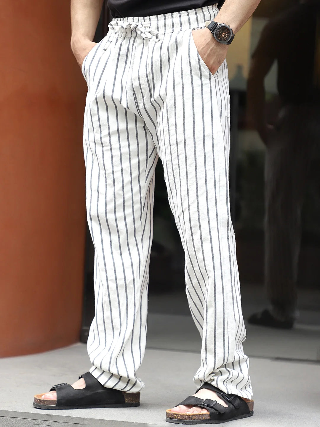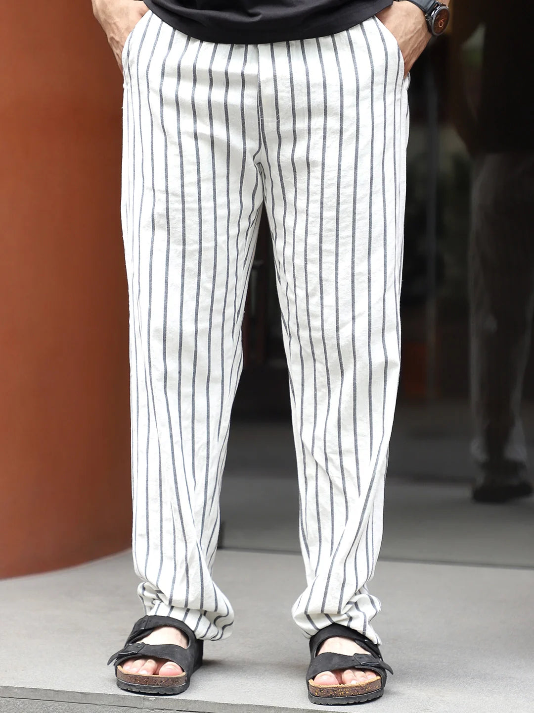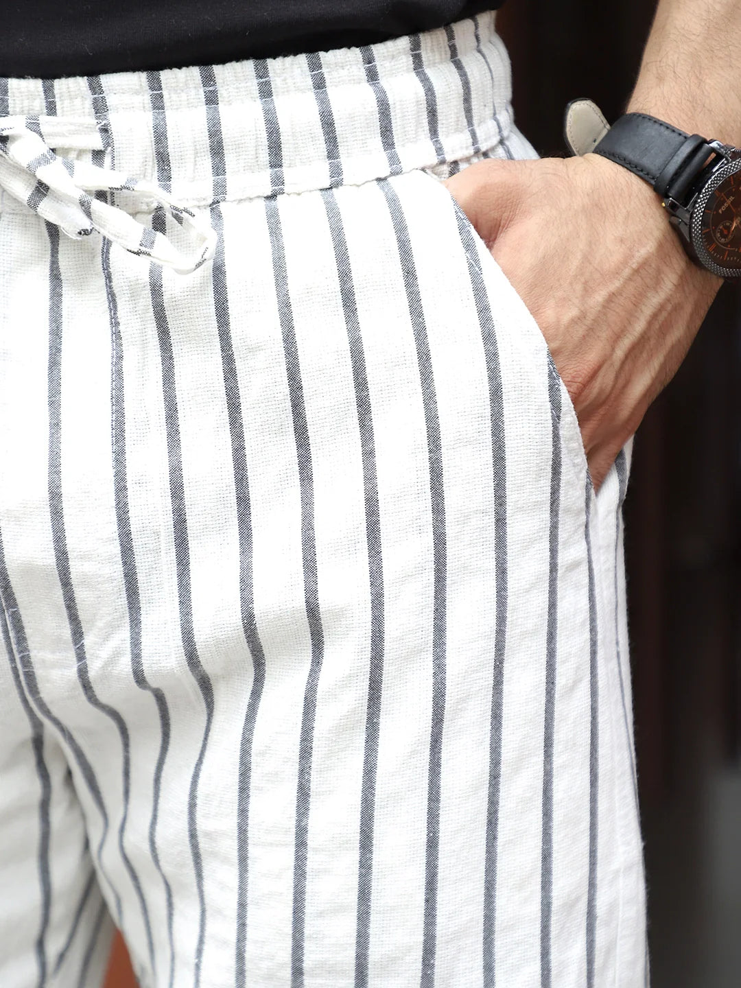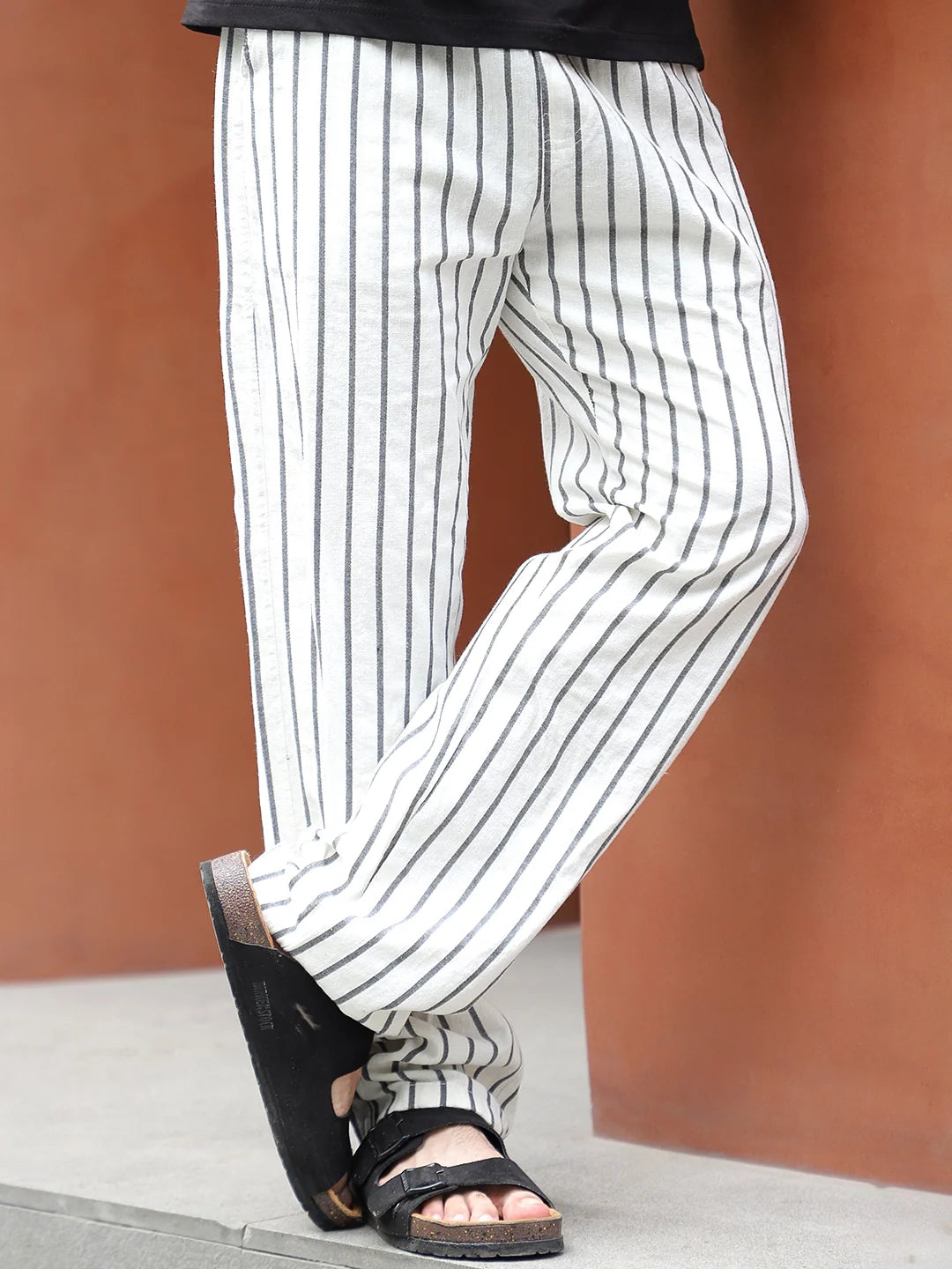 The Frostline White Stripe Trouser offers a refined blend of classic design and modern tailoring. Featuring a subtle beige base accented with elegant stripes, these trousers provide a sleek, professional appearance. Designed for comfort and durability, they are ideal for formal settings or upscale casual wear. The precise cut enhances fit and silhouette, making them a versatile addition to any expert wardrobe seeking understated sophistication.