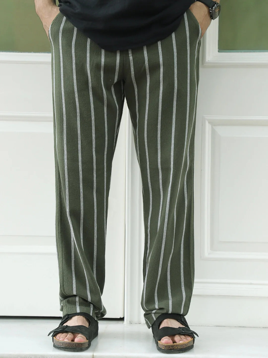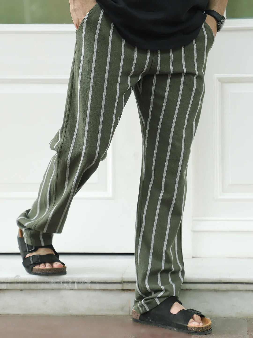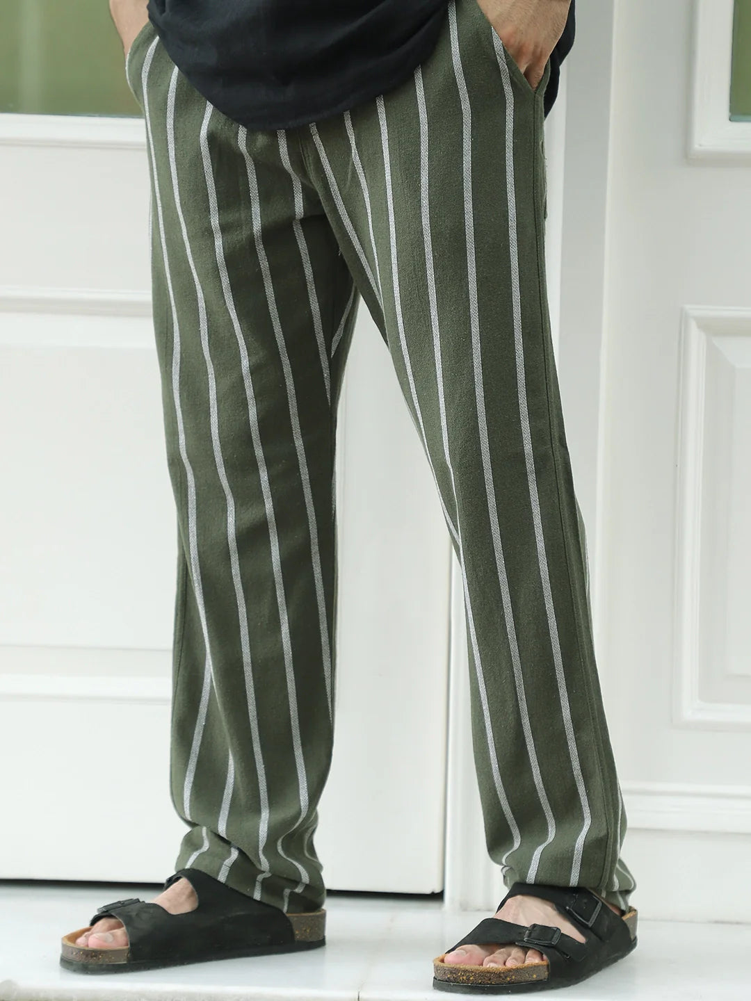 Crafted for the discerning wardrobe, the Mavero Dark Olive Stripe Trouser combines refined tailoring with subtle patterning. Its dark olive hue accented by understated stripes offers a sophisticated yet versatile look, ideal for both professional settings and smart-casual occasions. Designed to provide a comfortable fit without compromising style, these trousers elevate your ensemble with expert precision.