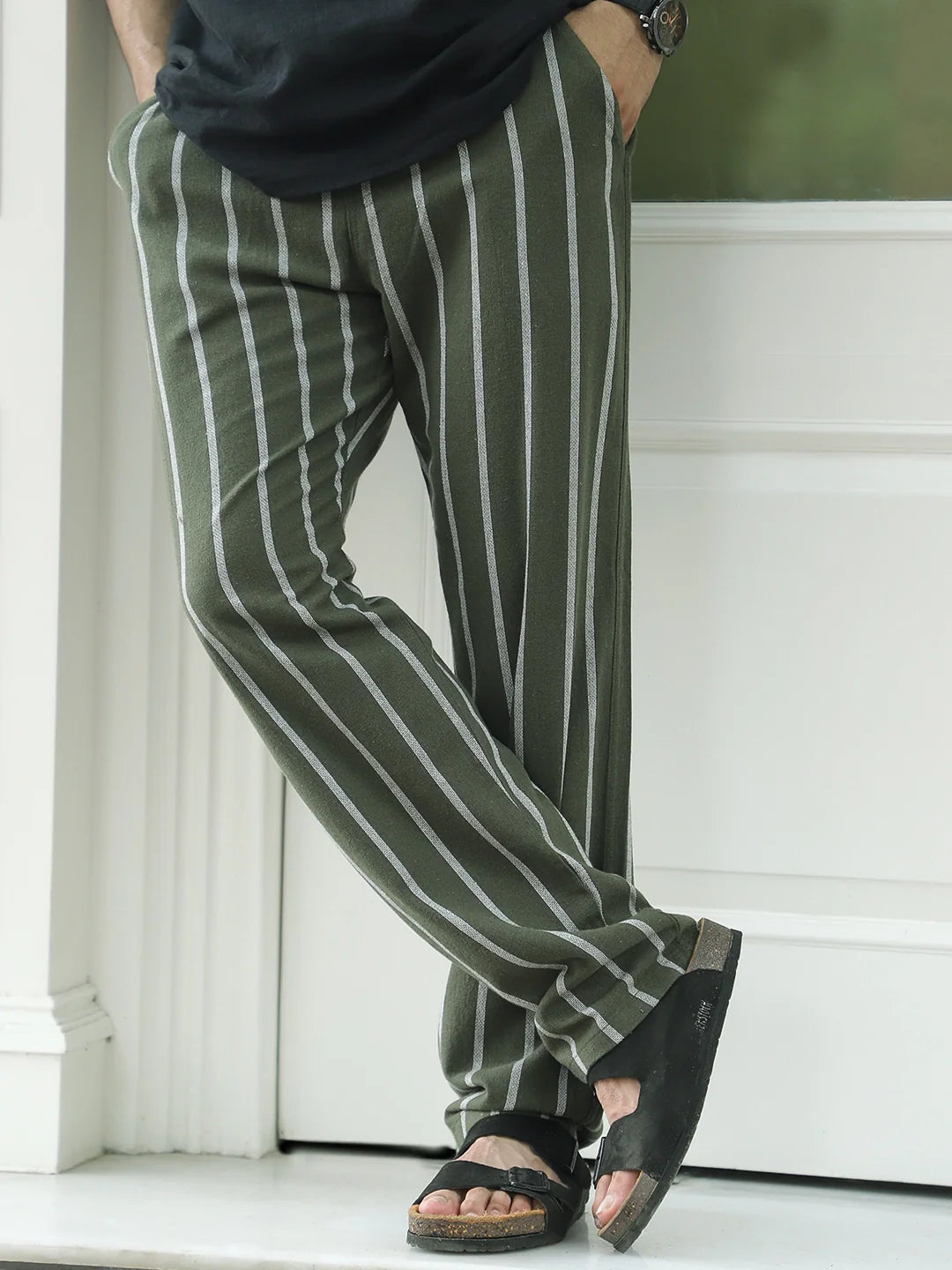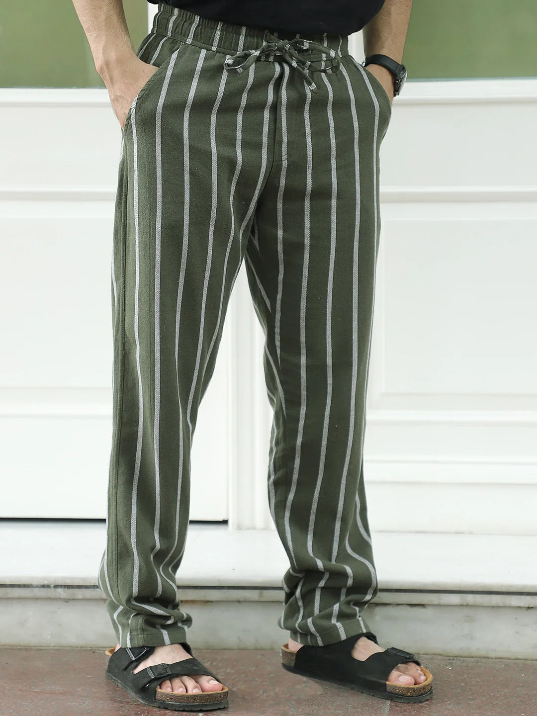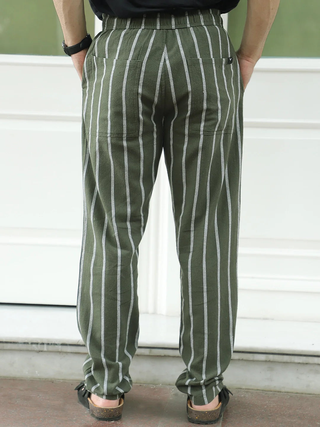 Crafted for the discerning wardrobe, the Mavero Dark Olive Stripe Trouser combines refined tailoring with subtle patterning. Its dark olive hue accented by understated stripes offers a sophisticated yet versatile look, ideal for both professional settings and smart-casual occasions. Designed to provide a comfortable fit without compromising style, these trousers elevate your ensemble with expert precision.