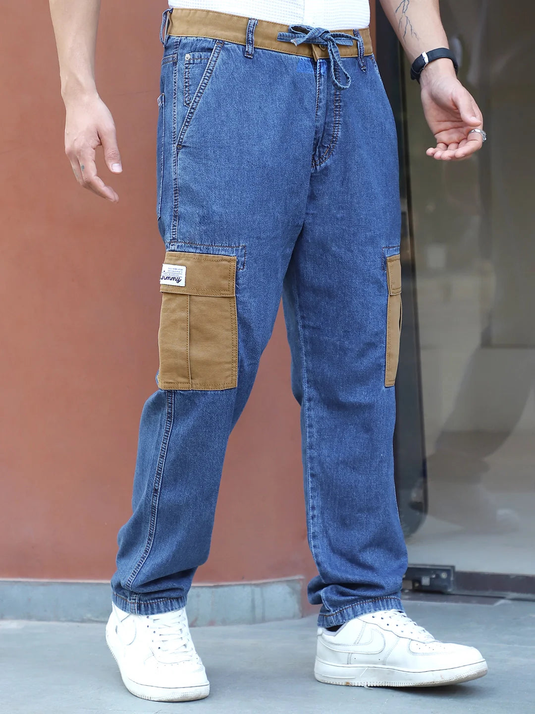 The Mezzanotte Dark Blue Baggy Fit Denim Cargo offers a contemporary blend of style and functionality. Crafted from durable denim in a rich dark blue shade, its baggy fit ensures comfort and freedom of movement. Multiple cargo pockets provide practical storage, making it ideal for everyday wear or casual outings. This piece combines modern streetwear aesthetics with utility, perfect for those seeking both fashion and convenience in their wardrobe.