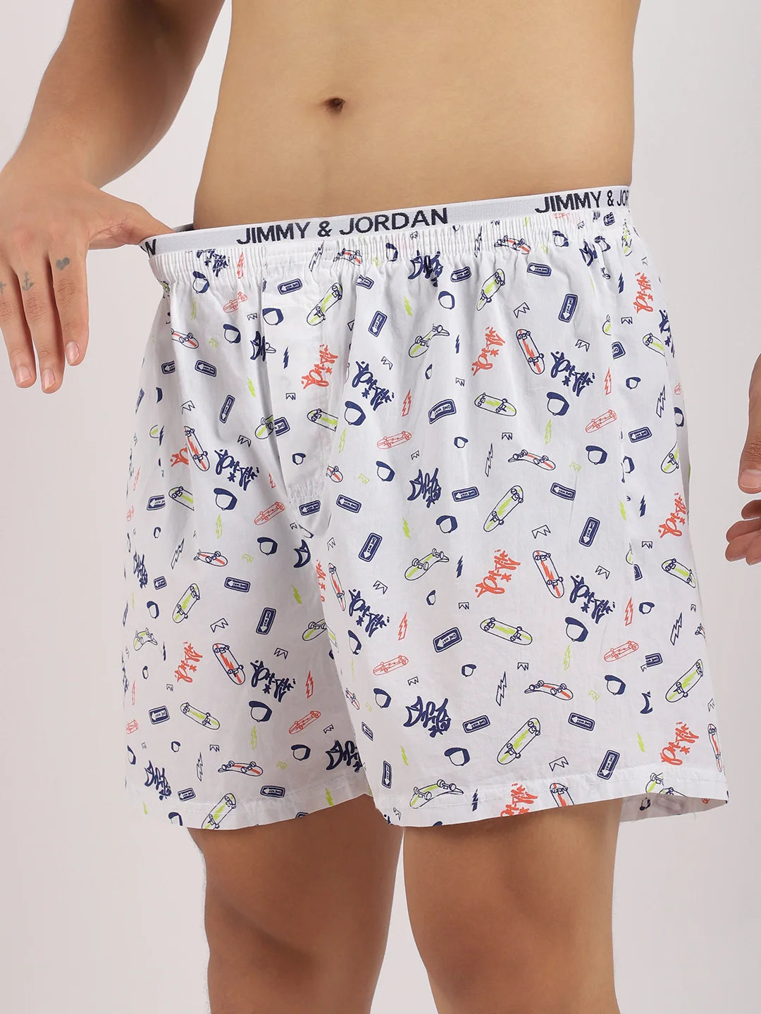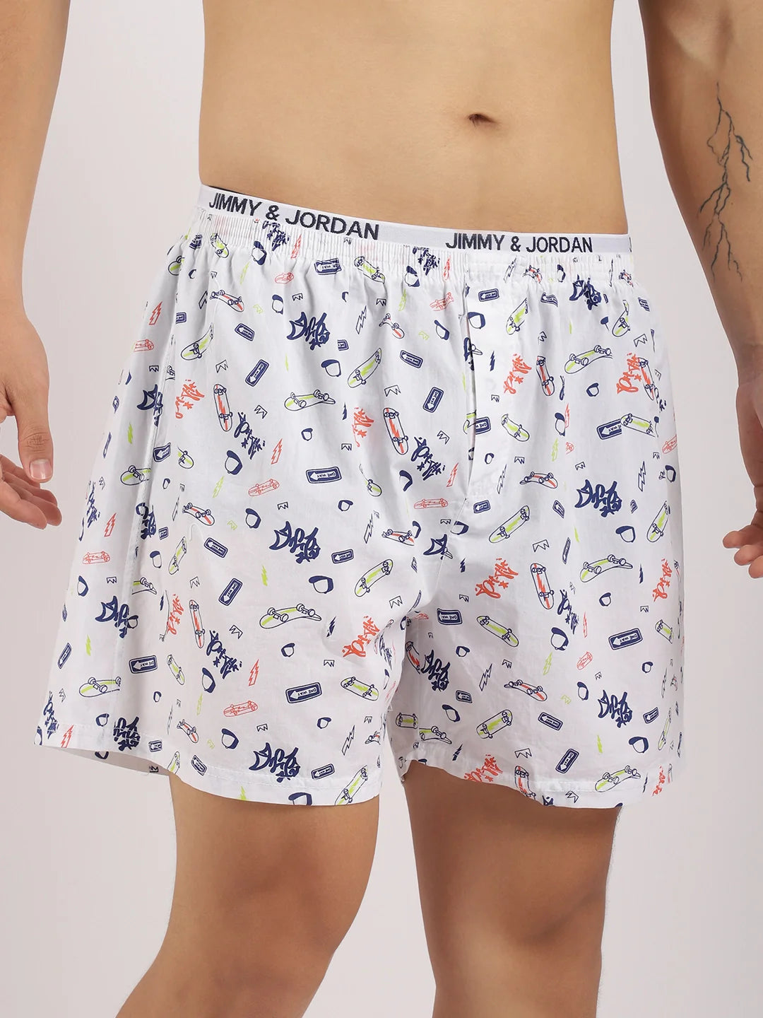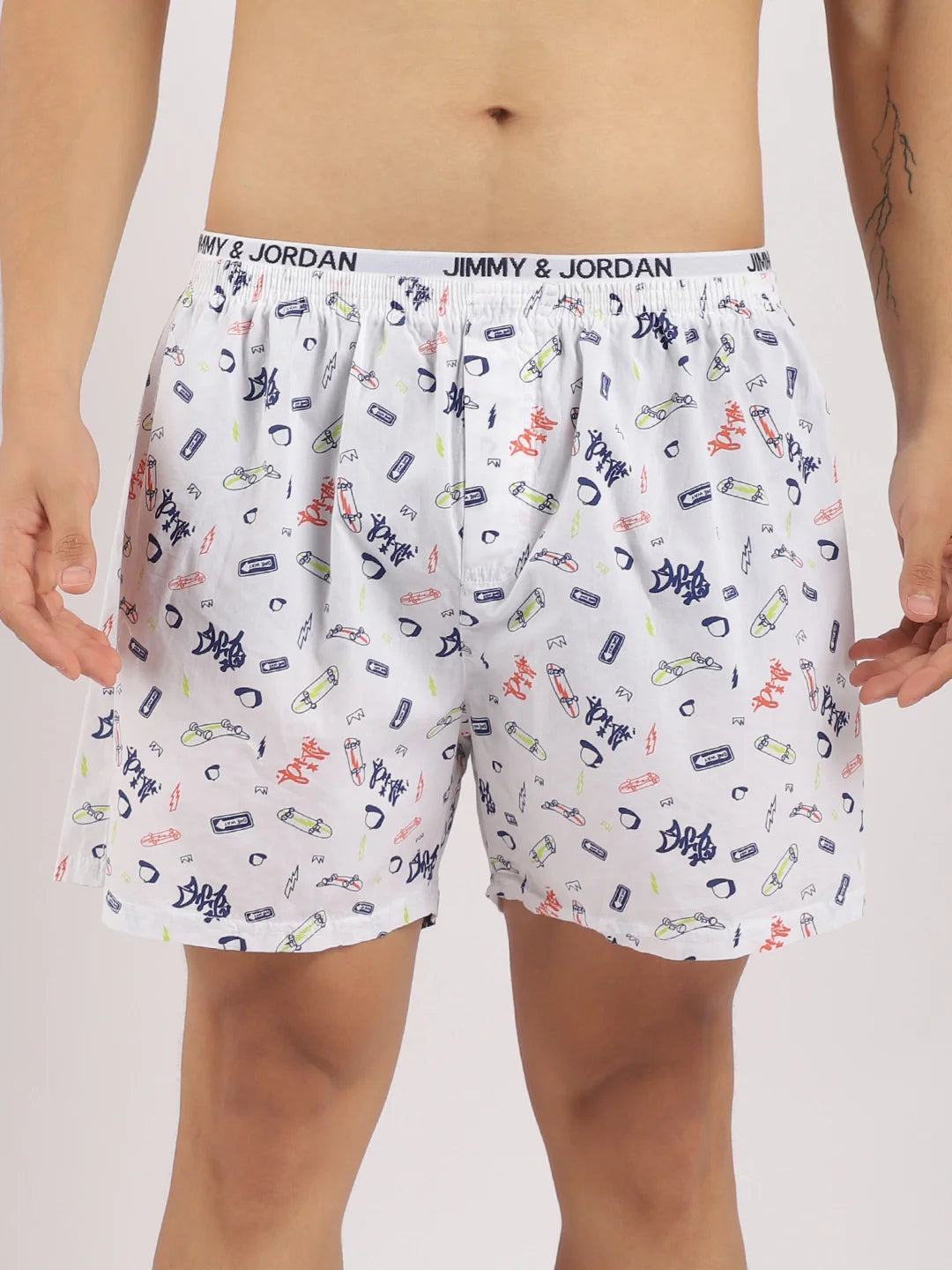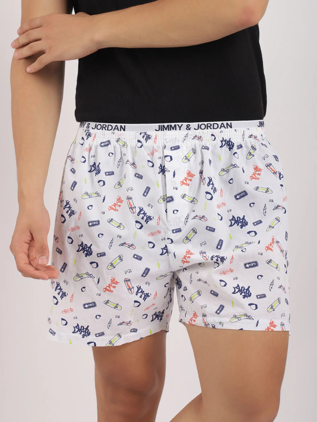 Experience comfort and style with the Play Boy Skate White Print Boxer. Crafted for a perfect fit, this boxer features a crisp white base adorned with dynamic skate-inspired prints, combining casual flair with everyday functionality. Its breathable fabric ensures all-day comfort, making it an ideal choice for active lifestyles or relaxed wear. Elevate your essentials with this expertly designed boxer that balances trend and comfort seamlessly.