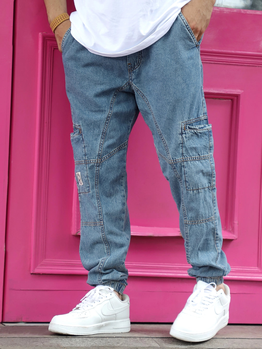 Expertly crafted with jogger fit and durable denim, the Skyline Tint Light Blue Denim Joggers pants offer comfort and style for any occasion. The tailored design and cargo pockets provide functionality, while the jogger fit adds an urban edge. Perfect for those seeking a modern and versatile addition to their wardrobe.