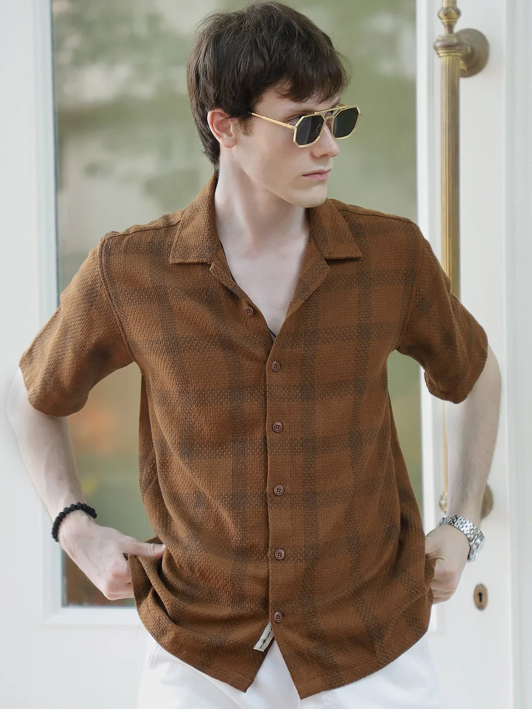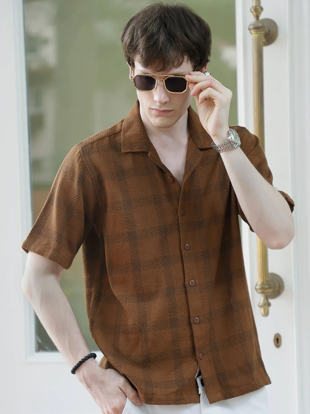 Elevate your wardrobe with the Sunbound Brown Check Shirt, expertly crafted for a refined yet versatile look. Its rich brown hue and subtle textured check pattern add depth and sophistication, making it ideal for both casual and semi-formal occasions. Designed with quality fabric, this shirt ensures comfort and durability, while its tailored fit enhances your silhouette with precision. Perfect for those who appreciate timeless style combined with expert craftsmanship.