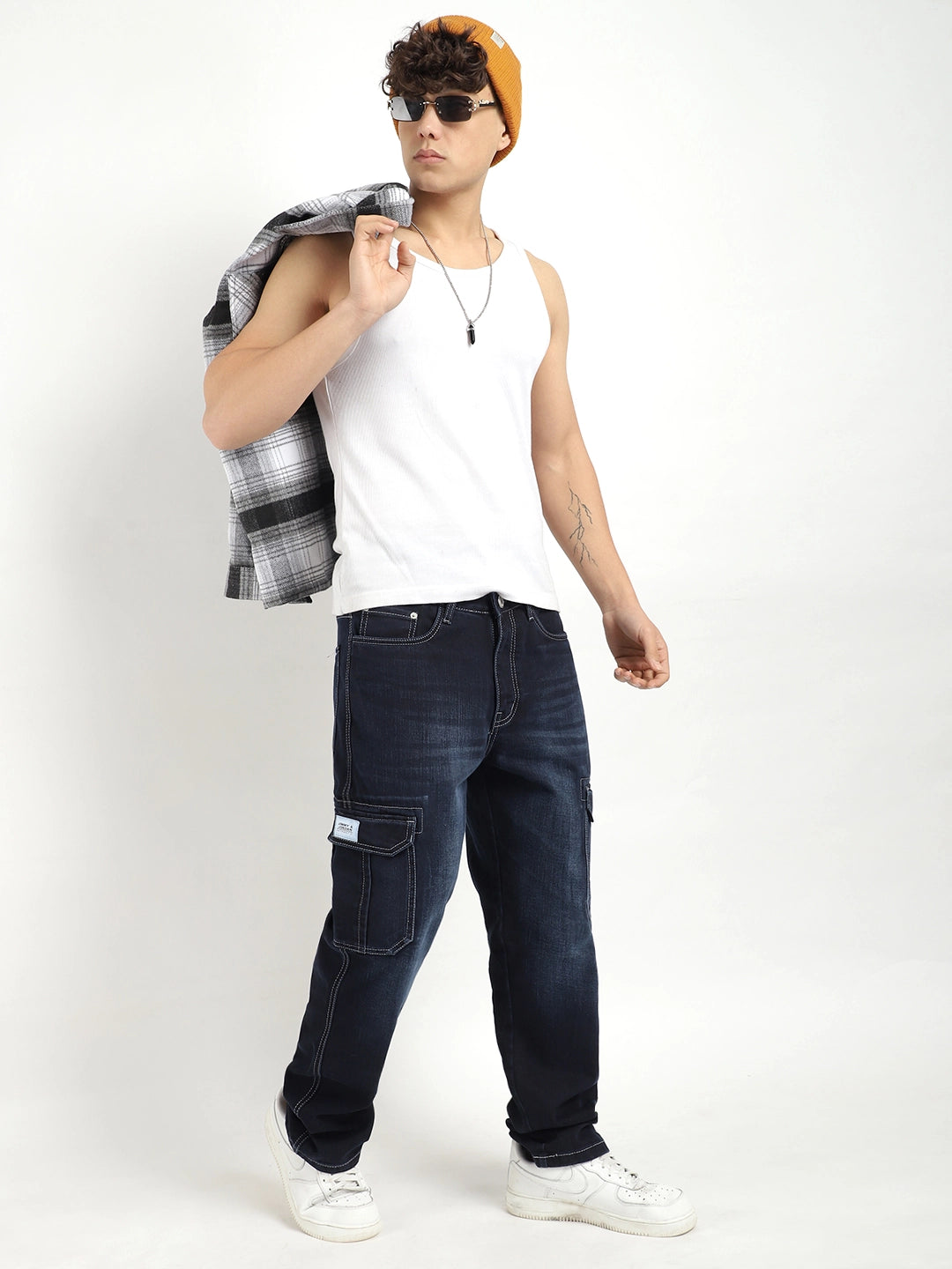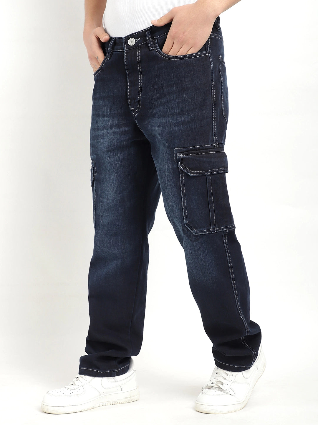 Upgrade your wardrobe with the Utility Forge Prussian Blue Denim Cargo. Made with durable and functional design, this cargo is perfect for daily wear. The high-quality denim fabric provides both comfort and style, while the cargo pockets offer extra storage space. Upgrade your style game with this must-have denim cargo.